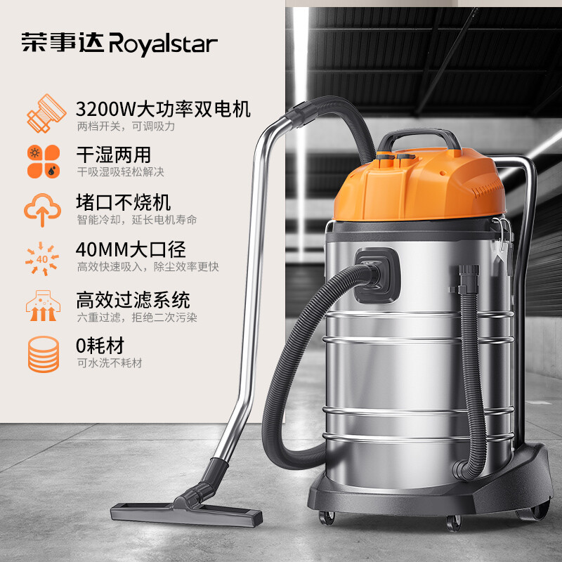 荣事达大功率吸尘器-3200W大容量不锈钢桶身70L,6重强悍过滤,可倾倒设计。...